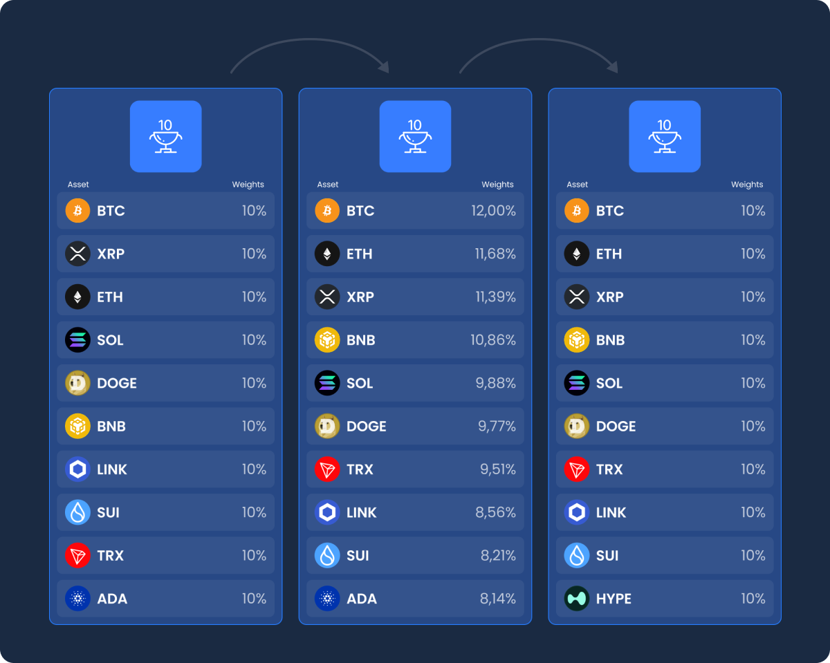 Indexes transform passive users into recurring revenue streams - because even when investors “do nothing,” the system rebalances and collects small fees. This way, you are monetizing your existing user base, without additional sales efforts. This has proven to be a good way to generate sustainable revenue during slowdowns/bear markets.