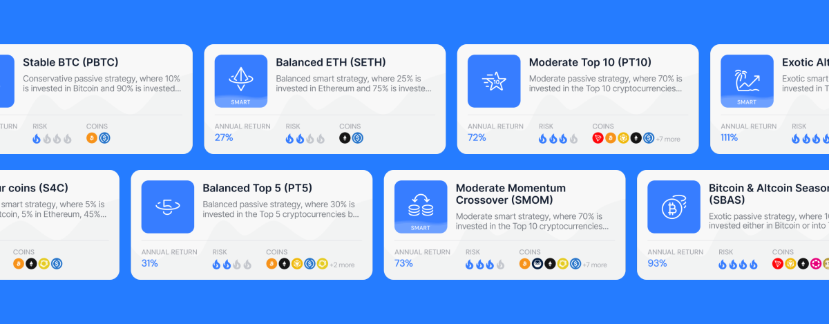 This is the simplest and most popular way to invest in any asset class. Diversification provides an aspect of safety, while automatic rebalancing allows users to always have the most up-to-date coins in their portfolio (and not continue holding bags of poor performing coins).